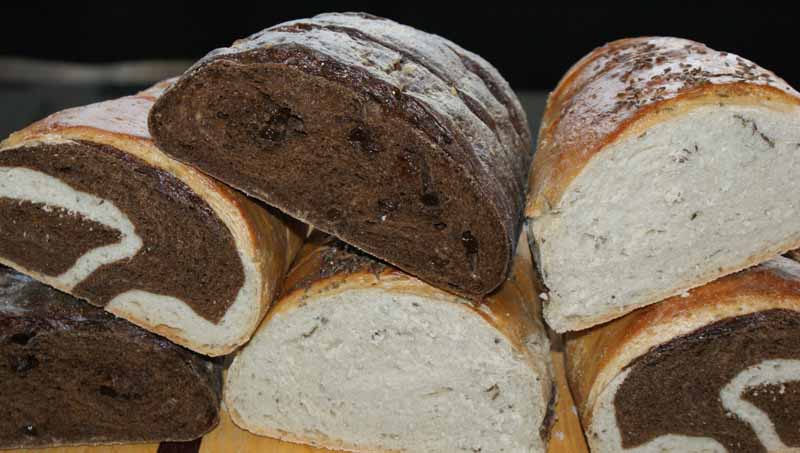 The rye triumvirate: raisin pumpernickel, deli rye and marble rye, which recalls the custom