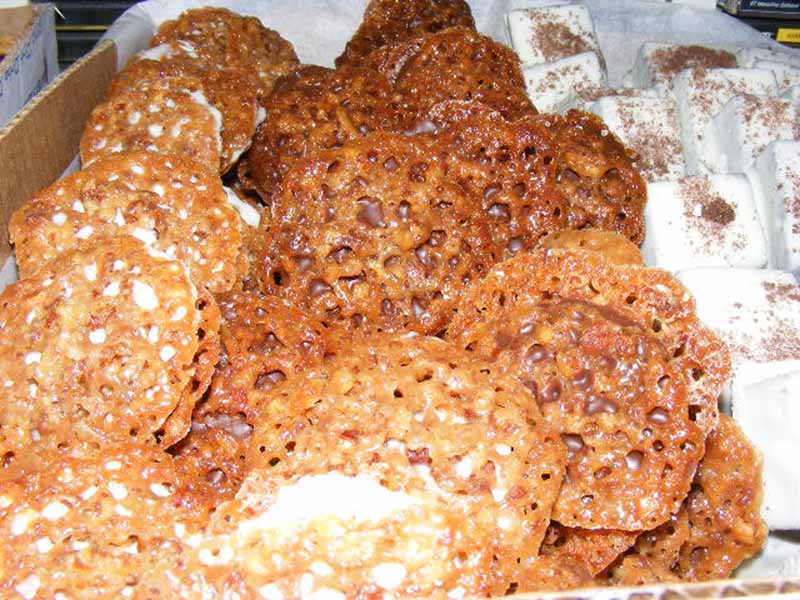 Also called Florentines, these rich, sweet lace cookies were always the first to go at any dessert table.